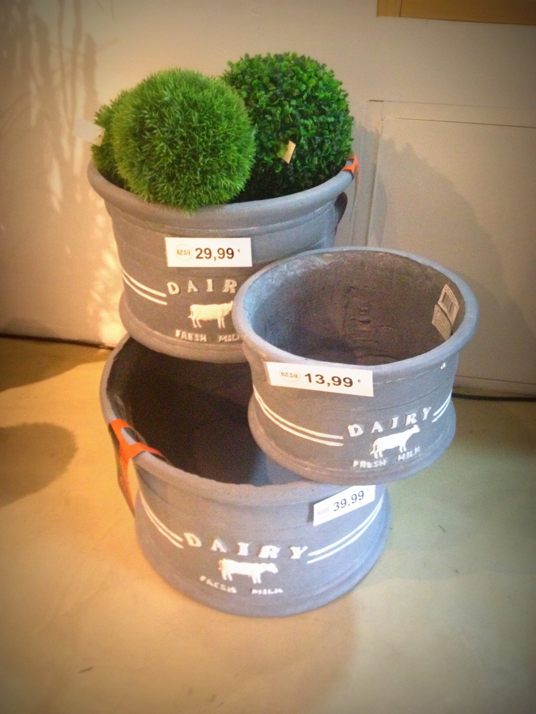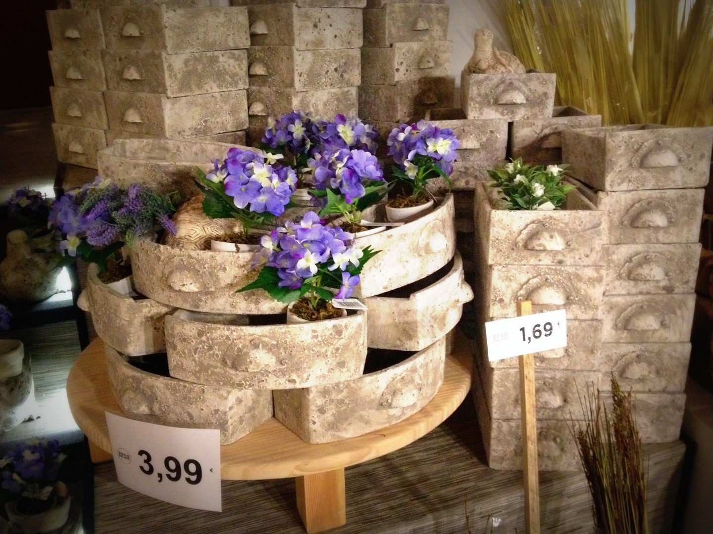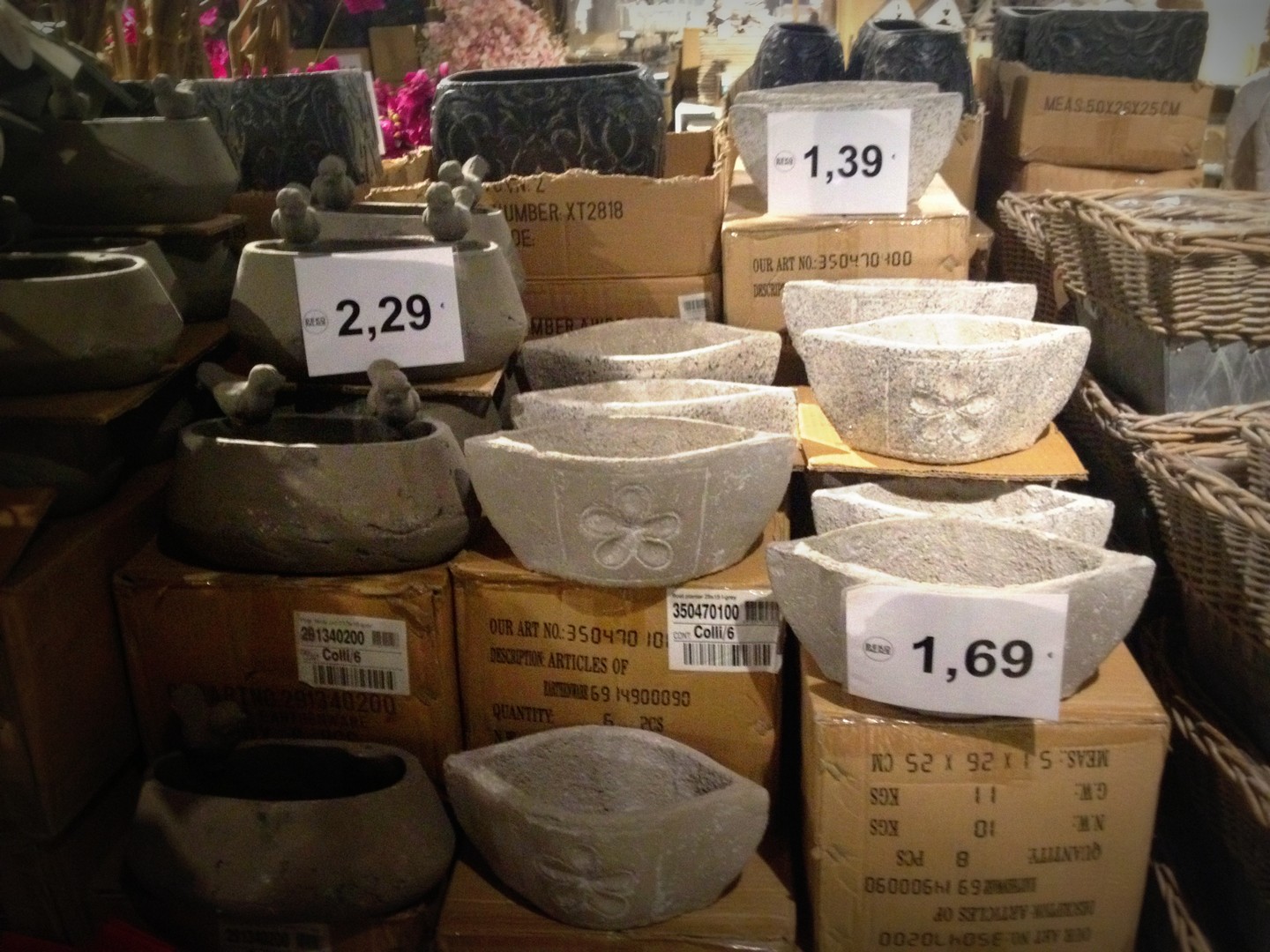 Macetas, no sé de qué están hechas pero parecen de piedra, de unos 20 x 20 cms, 3,99€