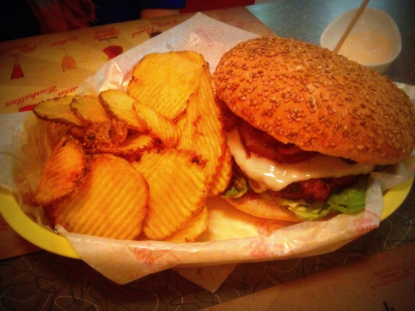 En cuanto a la comida, en Bernie’s tienen lo típico de los American Diners: hamburguesas, BBQ , Club sándwiches, hot dogs, cheesecake, banana Split, milkshakes, pancakes… podéis ver aquí el detalle. (algunas de estas fotos las he sacado de este post, de un blog que me ha gustado mucho por cierto!