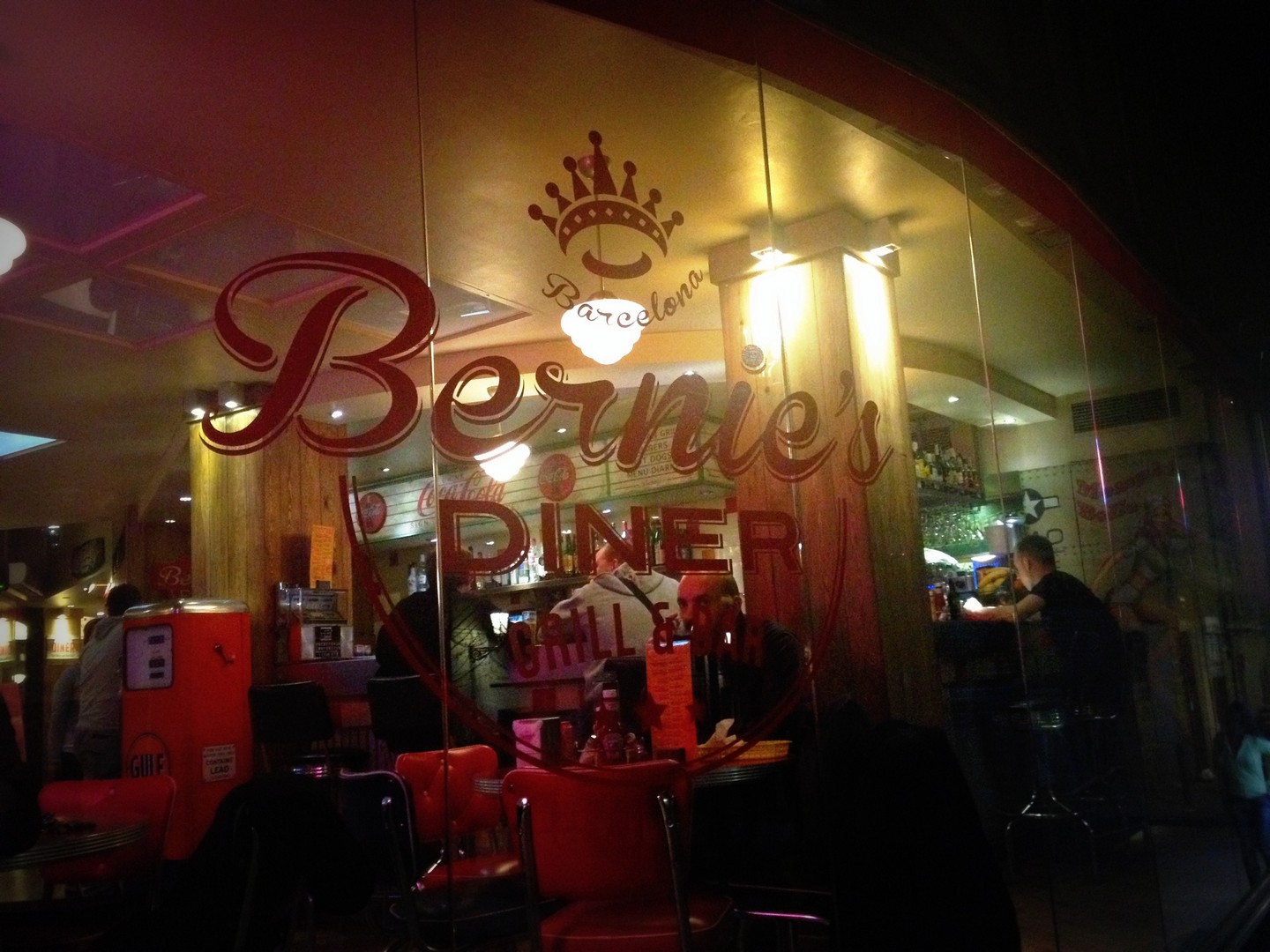 Bernie’s Diner es un restaurante americano ubicado en el barrio del Borne de Barcelona, concretamente en la esquina que forman la Vía Layetana, la calle Princesa y la calle Ferran (delante de la parada de Metro Jaume I). Seguro que habéis pasado por delante muchas veces, pero lo malo que tiene Bernie’s Diner es que no se ve mucho desde fuera.