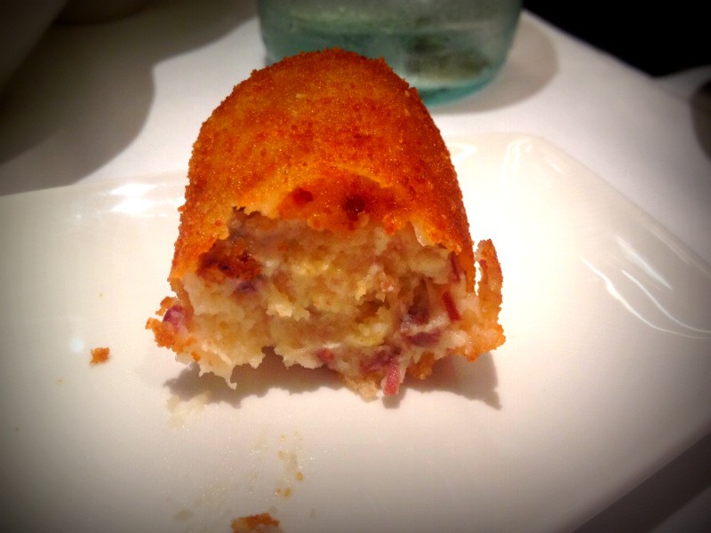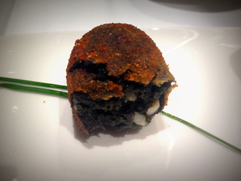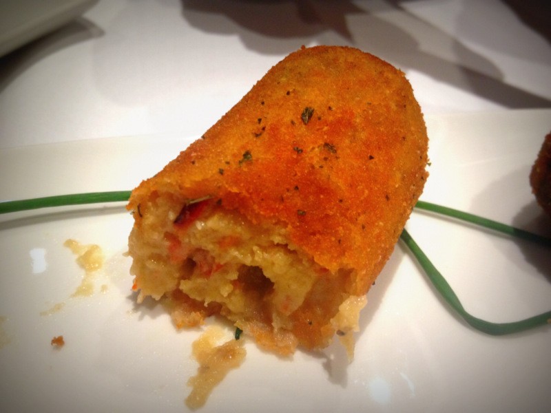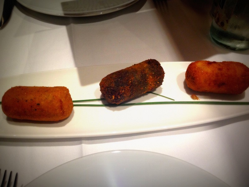 3 Croquetones de: jamón ibérico Gorgonzola y nueces, de sepia y de escalibada.