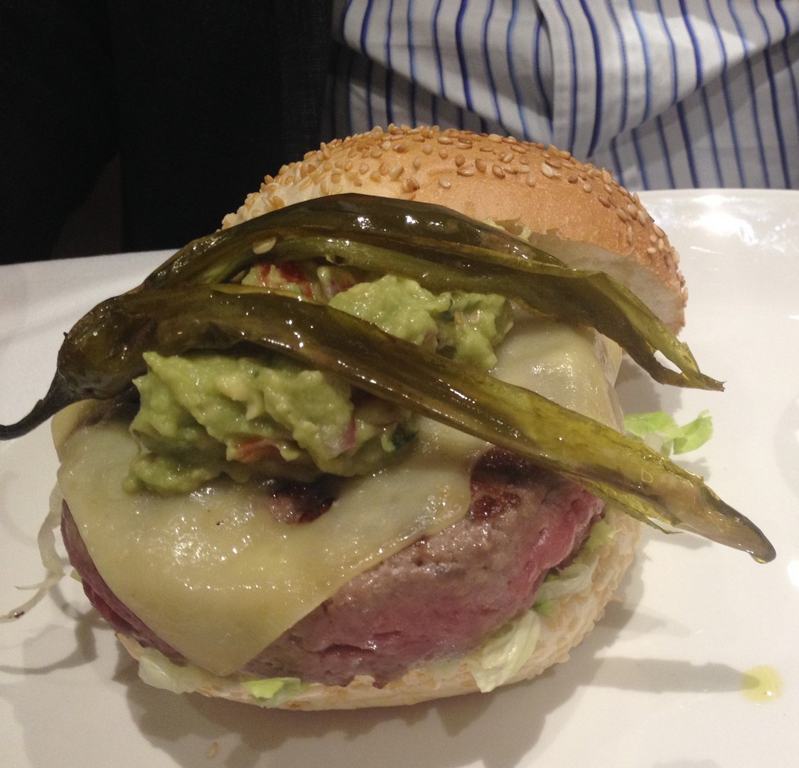 Hamburguesa Mexican Style: Guacamole, lechuga, queso emmental, jalapeño y salsa chipotle. Carne increíblemente buena (de filete de Girona como he dicho antes), y en su conjunto un 10. Ojo que picaba muchíiiiisimo.