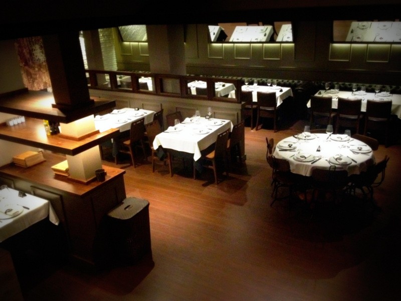 …y el de abajo gigante! La sonoridad es muy buena (perfecto para comidas en grupo), y en el piso de abajo tienen mesas redondas y algunas con sofás, súper cómodos y apetecibles.