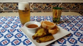 - Ca la Jadi (Marqués de Campo Sagrado, 25): Tres alitas de pollo con pan con tomate y salsa picante. Caña, vaso de té con mena o agua.