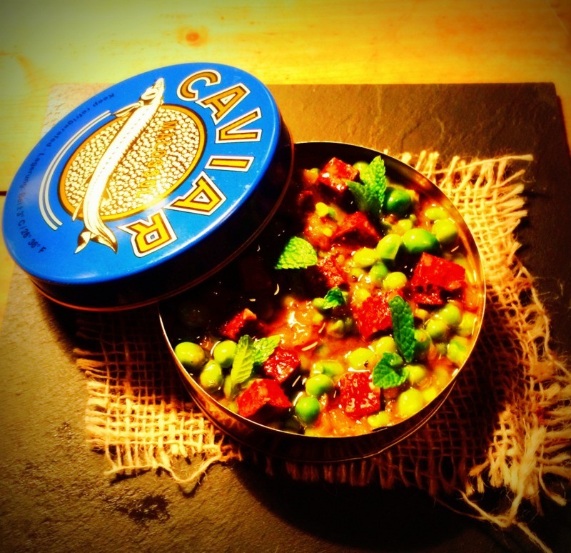 Otras de sus especialidades son el Meloso de Ternera con cremosos de patata y cebolleta platillo, el falso canelón de berenjena relleno de bonito y escalivados con pesto y crujiente de parmesano, o el caviar del Maresme. Guisantes de Llavaneras con butifarra y un toque de menta.
