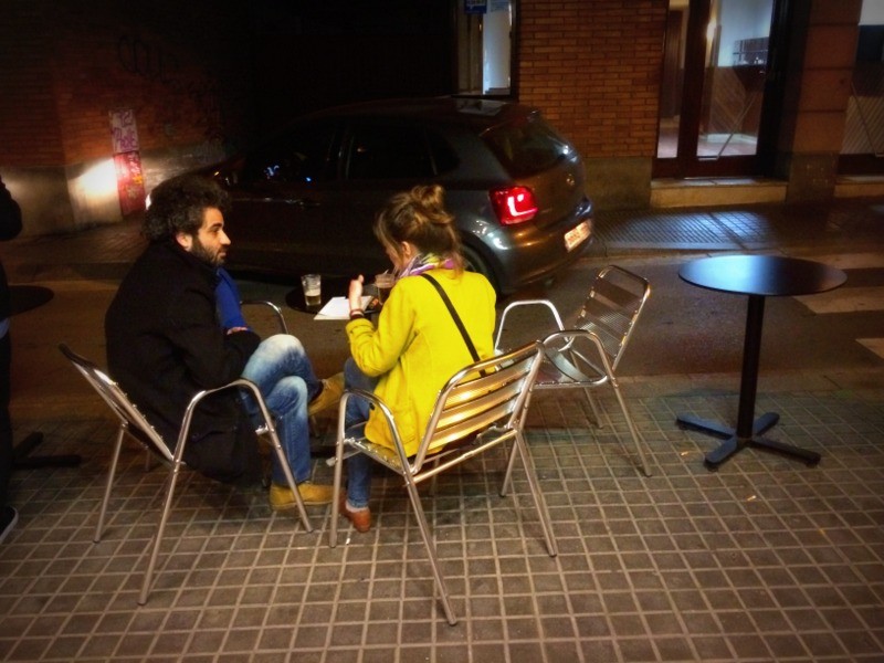 Tiene una mini terraza.. con dos mesitas en la calle Zaragoza!