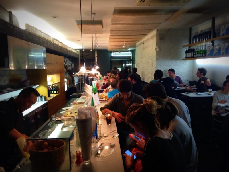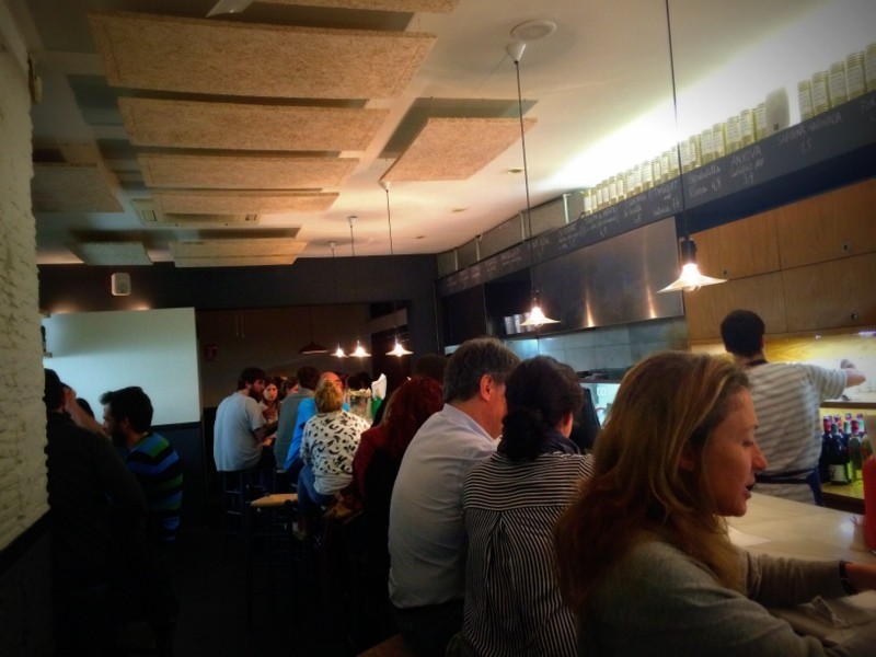 Dalt de Tot es el que más me gusta de los tres ya que, aparte de vermuts y aperitivos, tienen bastantes cosas para picar. El ambiente de Dalt de Tot es informal, joven y divertido, es un sitio perfecto para ir a picar algo después de trabajar, o a cualquier hora ya que tienen cocina ininterrumpida (los fines de semana, entre semana desde las 18h)! El local de Dalt de Tot no es grande, basante minimalista y desenfadado.