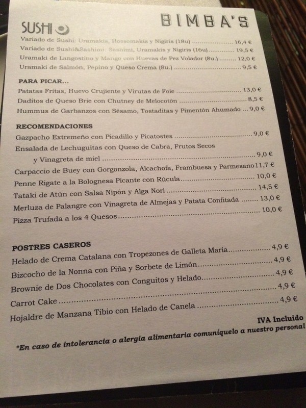 Hoy un post sobre el Restaurante Bimba’s, Restaurante muy recomendable que se encuentra al lado de lo que antes era Up&Down (los de mi quinta lo conoceréis, los demás: Dir Up&Down). Buena cocina y servicio, decoración agradable y buen ambiente en el Restaurante Bimba’s. Terraza tranquila y romántica.