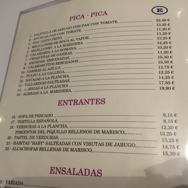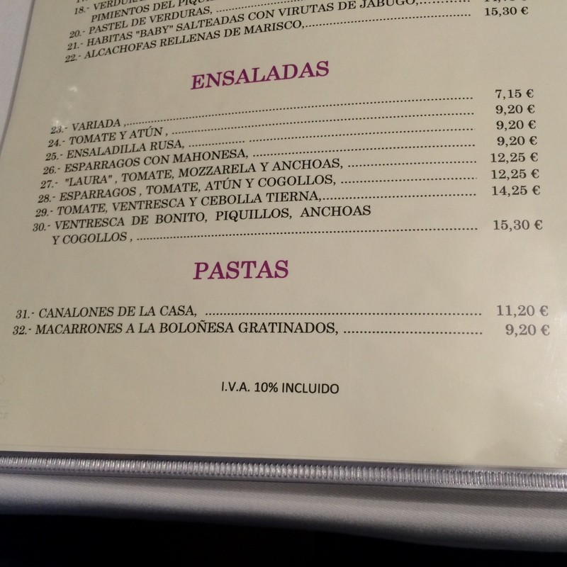 La última vez fuimos a cenar 4 personas y pedimos: