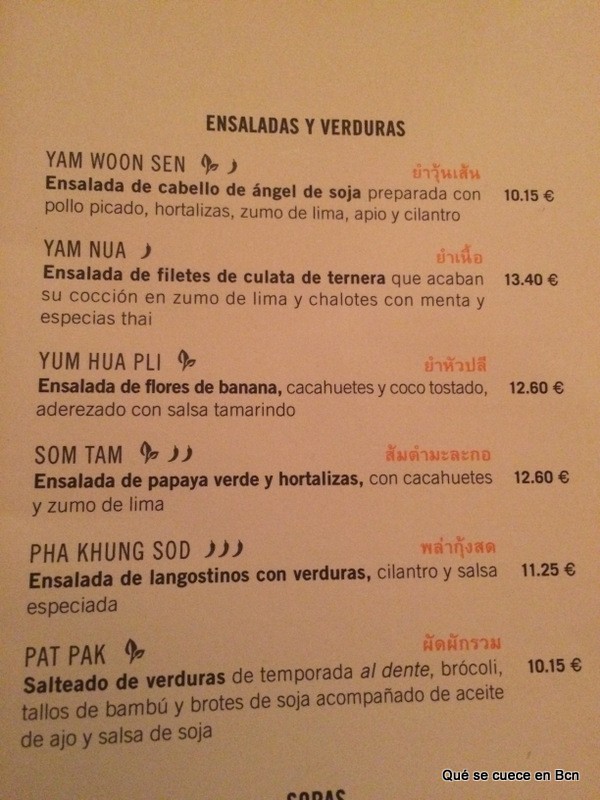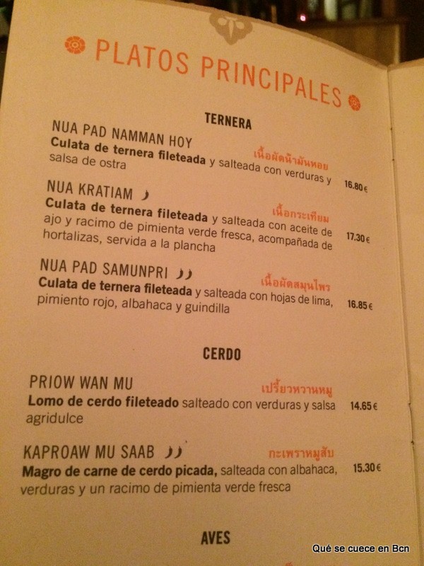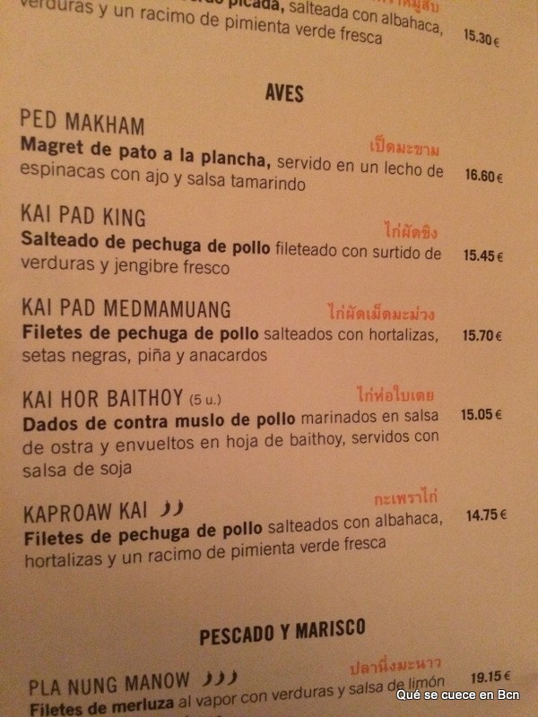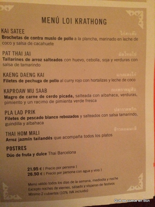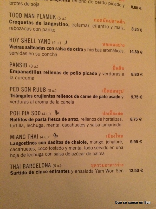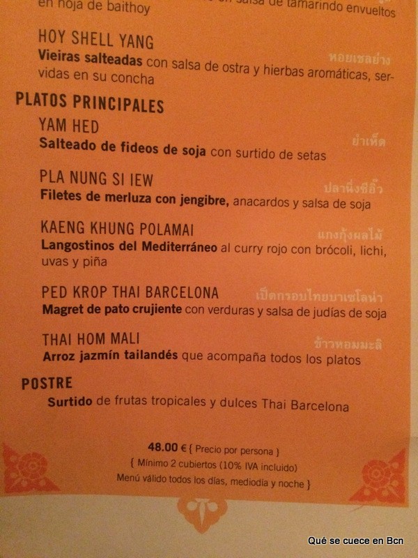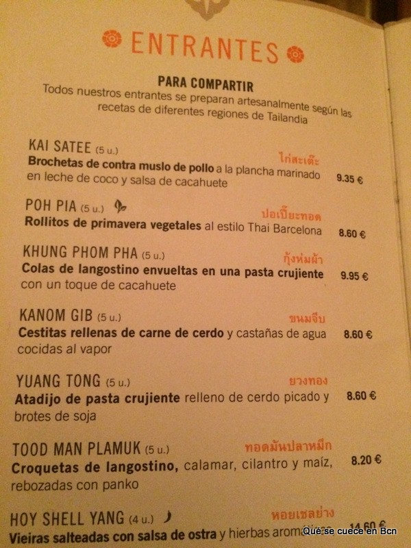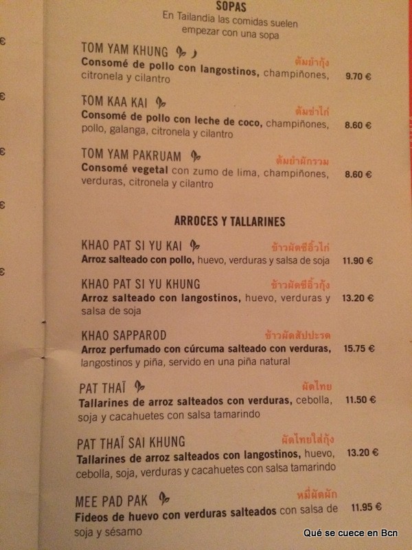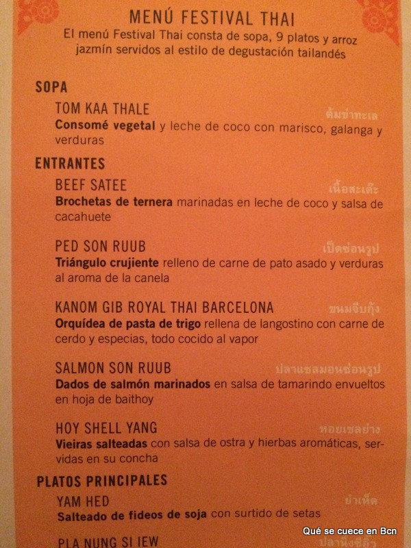 Aquí podéis ver la carta completa de Thai Barcelona – Royal Cuisine:
