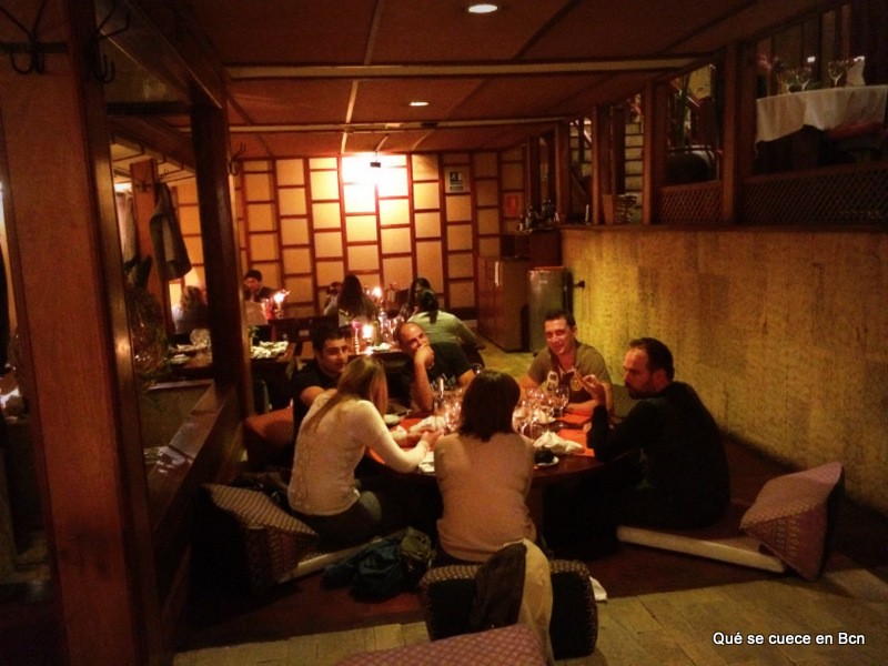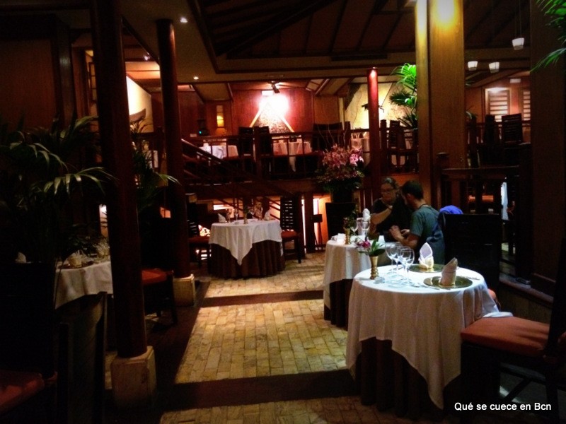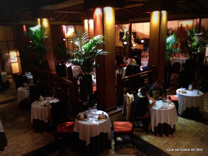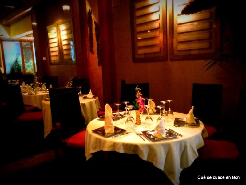 Thai Barcelona – Royal Cuisine es un restaurante con una decoración impresionante. Ambientado totalmente en Tailandia, cuenta con cientos de plantas y flores, decoración en madera y con cientos de detalles que hacen que te parezca que te encuentras en Tailandia. Tiene también mesas típicas Thai, bajitas, donde comes a ras de suelo. Poca luz, ambiente muy romántico, como podéis ver en las fotos: