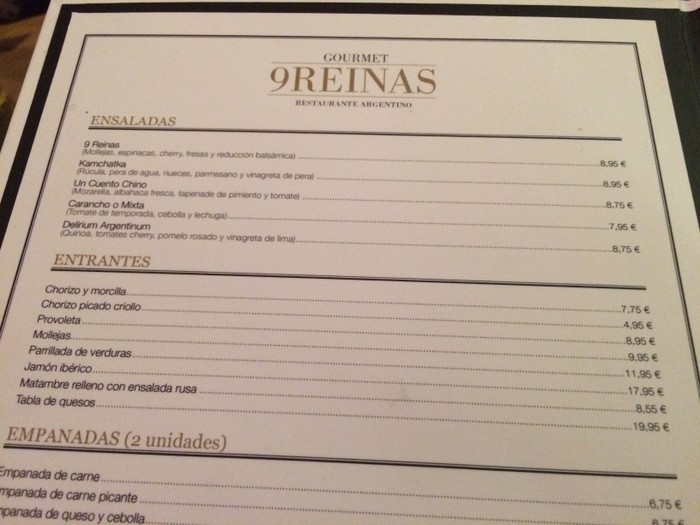 Hoy un restaurante argentino, creo que es el primero, y eso que me gusta la carne! Este fin de semana pasado probé el «nuevo» (lleva casi un año) Restaurante 9 Reinas Gourmet de la calle Ganduxer. 9 Reinas son un grupo de restaurantes argentinos de Barcelona y alrededores. Concretamente tienen 4: el primero y más conocido es el de la calle Valencia de Barcelona, tienen otro en Sant Cugat, uno en el centro deportivo Can Mèlich en Sant Just Desvern y 9 Reinas Gourmet en Ganduxer, del que os voy a hablar hoy.