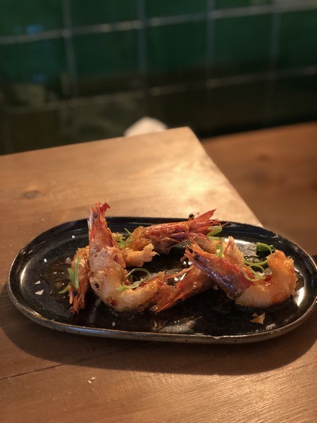 Gambas en gabardina y salsa de naranja picante
