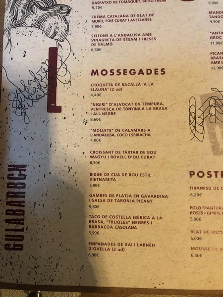 En conjunto el restaurante GULA BAR tiene muuuuuuuuuuuucha gracia: platillos «podríamos decir de autor» con un toquecillo. Buen producto, de temporada, bien elaborado, toque diferente y un servicio muy amable y de buen rollo. Ideal para ir a hacer el Vermut y Afterwork. LO RECOMIENDO MUCHO!!!