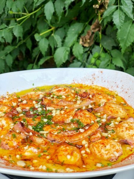 Pulpo con una base como de Parmentier muy muy buena