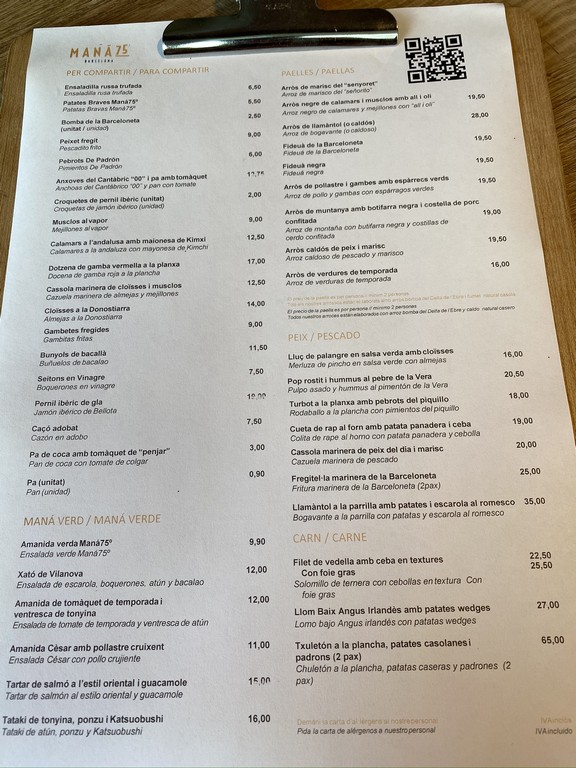 Estaba todo muy bueno, en especial el arroz y los calamares!!!!!!!! Para precios, aquí tenéis la carta completa: